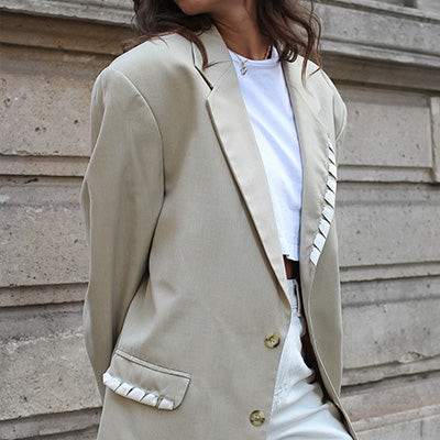 Des pièces intemporelles et élégantes, fabriquées en France à partir de matériaux issus de stocks dormants et de vêtements de seconde main soigneusement sélectionnés.